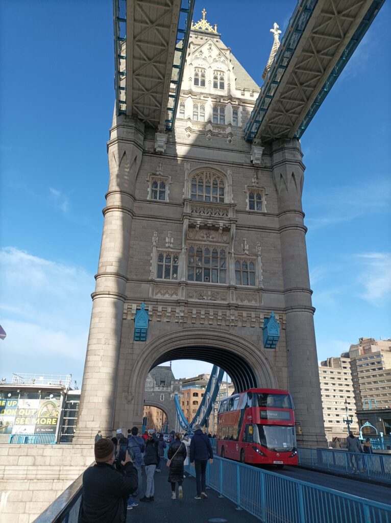 ALE věděli jste, že existují stránky, na kterých se dozvíte přesné dny a časy otevírání mostu? Jsou zde: https://www.towerbridge.org.uk/lift-times a doporučuji při plánování vašeho výletu po Londýně určitě zakomponovat jeden z časů do vašeho programu, protože je to nevšední zážitek, a to nejen pro děti. Když se pak po mostě budete procházet, dejte dětem úkol, ať dojdou na přesný střed a místo otevírání mostu. Poblíž této části se také nachází vyhlídka s tabulí, kde si detailněji můžete přečíst informace a prohlédnout si řeku Temži, na níž se nachází válečná loď HMS Belfast, potom zde můžete vidět Tower of London, mrakodrapy Shard a Sky Garden, budovu Old City Hall…a na druhé straně mostu se rozprostírají doky Sv. Kateřiny a další části moderního City of London.